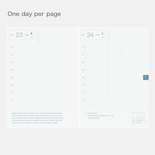 2026 Hobonichi Techo A6 English planner with daily pages, January start, Monday week start. Portable design with fountain pen-friendly paper. Clean layout for goals, schedules, and notes – great for daily productivity and reflection.